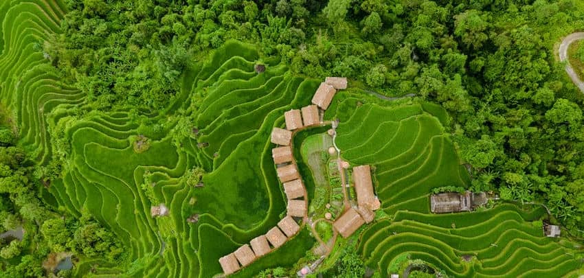 dans les montagnes sculptées de rizières en terrasse.